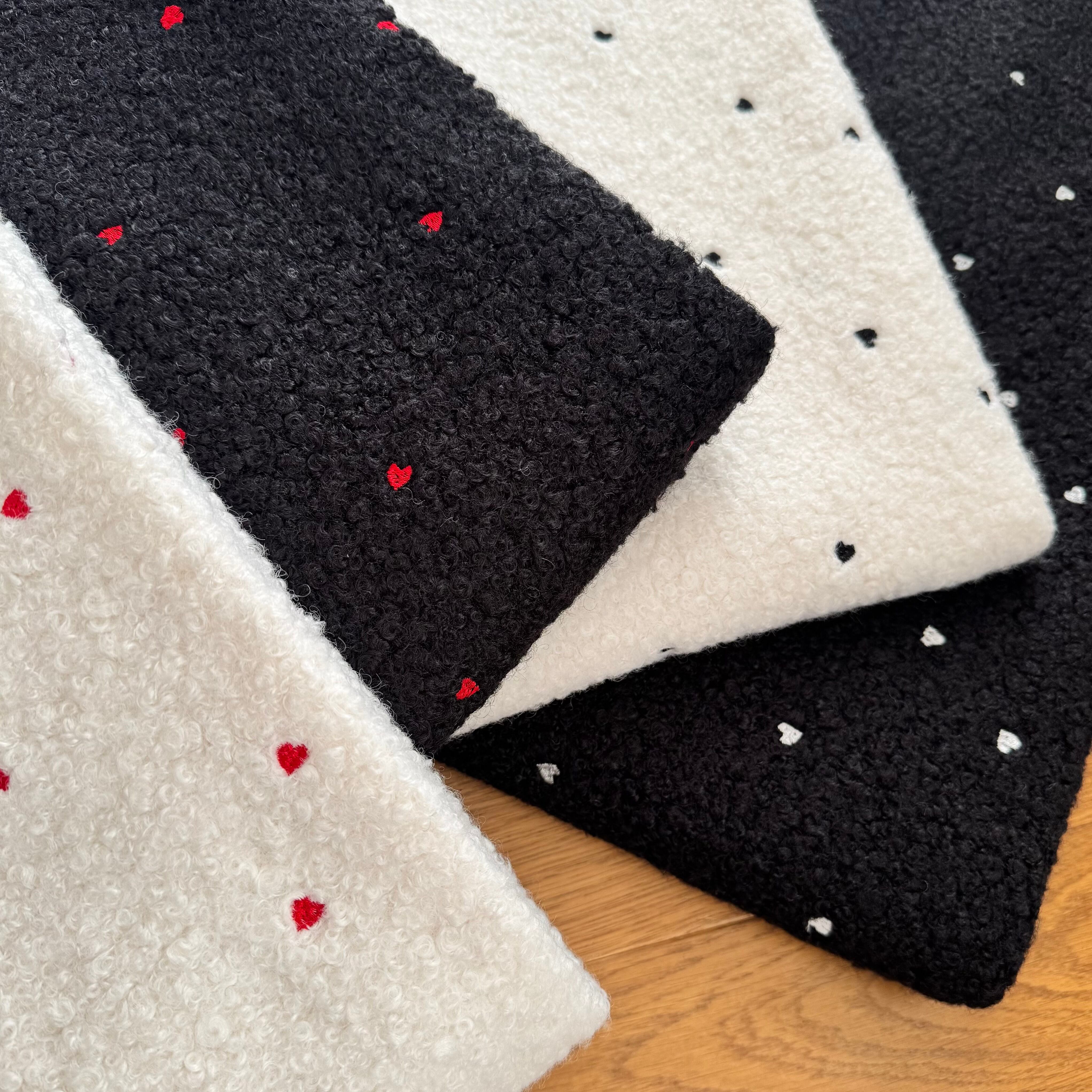 韓国で大人気の、ふわふわボア素材のハート刺繍生地です。